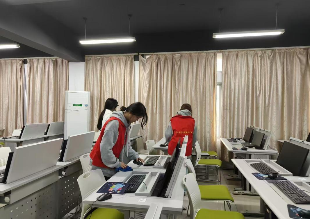 为了使活动的高效进行,活动开始前,带队学生将志愿者分成了几个小组,明确了各自的任务分工。在整理过程中,志愿者们发挥不怕脏、不怕累的精神,认真细致地完成了各项任务。他们将实验用到的玻璃器皿,按照类别和用途进行整理、归纳;将试剂瓶贴上标签,归位到指定位置;对实训室的地面、桌面等进行了彻底的清扫。同时,志愿者们还对四号楼的机房进行全方面打扫,将电脑主机旁以及抽屉当中的垃圾全都清扫干净,对一些损坏的设备进行了登记,并及时反馈,以便进行维修或更换。