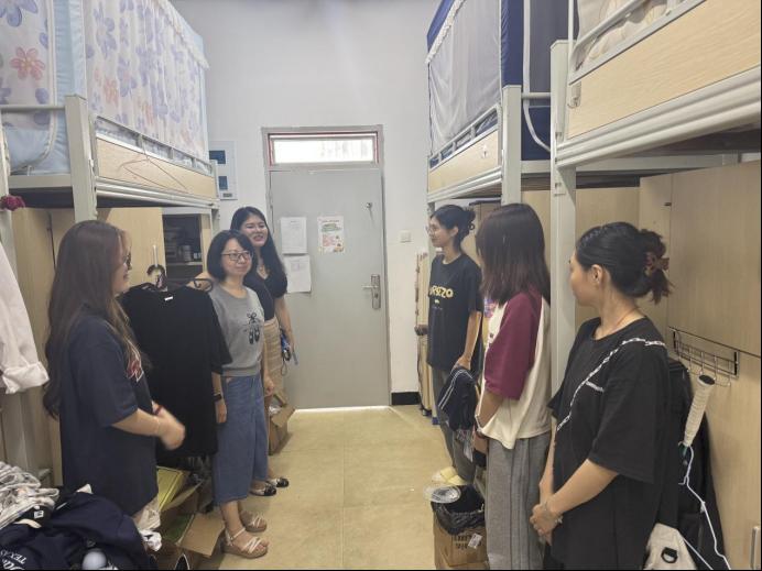 为切实了解学生需求,筑牢校园安全防线,2025年6月,化学与生物技术学院副院长袁晓娟带领辅导员深入学生宿舍,开展安全隐患排查,倾听学生需求,送去学院的关怀与温暖。