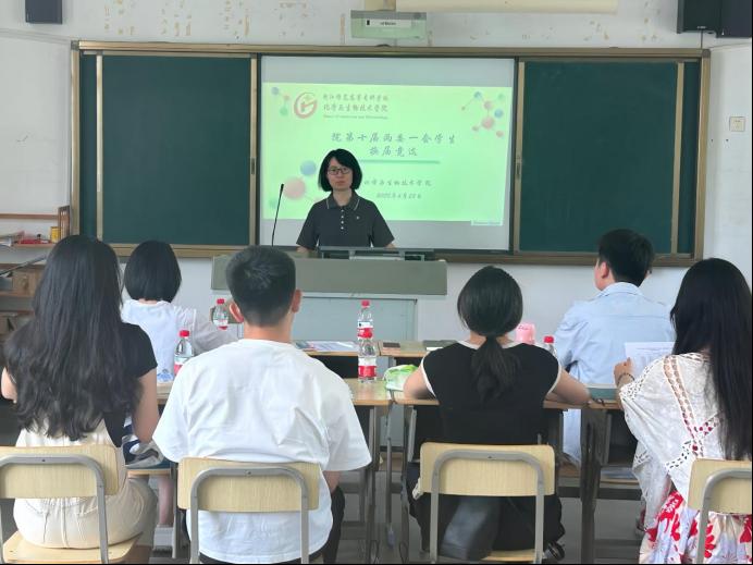 为进一步加强学院学生干部队伍建设,选拔德才兼备的优秀学生骨干,2025年6月22日,化学与生物技术学院在福清校区教学楼201教室隆重举行第十届两委一会学生干部换届竞选大会,学院副院长袁晓娟、团委书记赖翠凤及各辅导员参加。