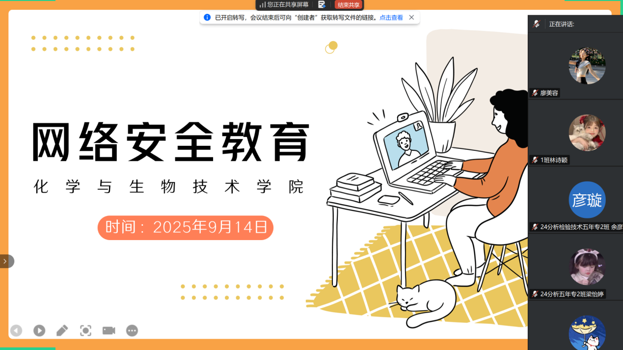 为有效提升学生的网络安全意识,增强网络风险抵御能力,共同打造安全、健康、文明的校园网络环境,2025年9月14日,化学与生物技术学院各年级辅导员以线上线下相结合的形式,组织全体同学开展“绷紧网络安全弦,共筑网络防护墙”主题班会,学生参与热情高涨。