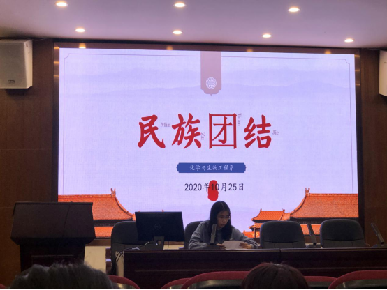 为了让学生更深刻理解我国各民族之间互相尊重,平等相待,和睦相处的民族大团结方针,化学与生物工系19工业分析专业和19食品药品监督管理专业全体同学于2020年10月25日晚20:00在一号楼学术报告厅开展了以“民族团结”为主题的班会。