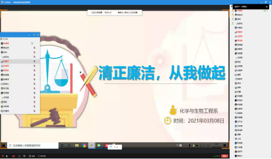 为了更好地推进廉洁文化教育进校园活动,培养学生崇廉敬德的思想品质,让学生懂得廉洁教育从我做起,防腐拒变、讲诚信话、做诚信事、努力学习;并担当起“敬廉崇洁”义务宣传员、监督员的角色。2021年3月8日,18级毕业班通过QQ群开展“清正廉洁,从我做起”主题班会。