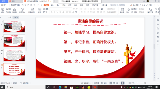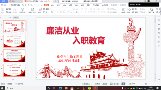 为教育和引导2021届毕业生做好入职准备,扣好职业生涯第一粒扣子,顺利开启人生新征程,坚实迈好人生每一步。化工系于2021年5月25日线上开展了2021届毕业生“廉洁从业,入职教育”主题班会。