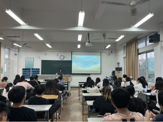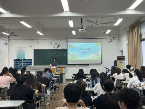 赖老师从交通安全、出行安全、人身安全,特别是防拐防骗和假期兼职等方面着眼,列举了各种安全事故的危险性,并结合我们生活中容易遇到的安全问题提出了防范措施。同时,就宿舍安全强调做到文明、安全离校,切断水电、关闭门窗;暑期社会实践要增强防诈骗意识,谨慎兼职,加强自我防护。在这期间,同学们认真听讲,并且就一些现实安全问题,发表了自己的看法与意见。
