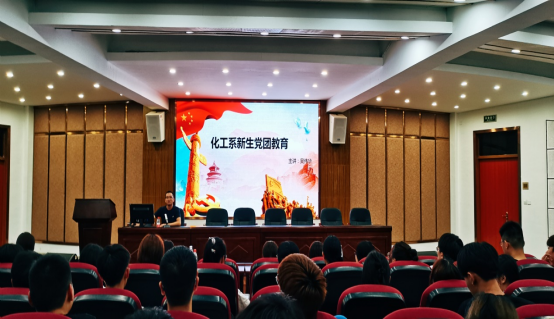 吴伟华老师结合大学生思想实际,从如何树立坚定的理想信念、为什么要树立坚定的理想信念等几个方面教育新生要树立远大理想,做新时代有为青年。他还讲述共产党员应该具备的条件、入党流程、书写入党申请书注意事项等。同时向同学们介绍了化工系团委组织概况,入团流程等,引导同学们积极入团、入党。