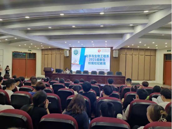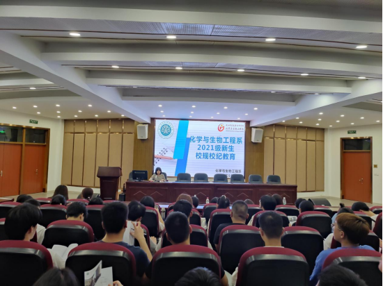 俗话说“没有规矩,不成方圆”。为了使21级新生尽快熟悉校规校纪,培养大学生良好的习惯养成,树立好的班风与学风,化学与生物工程系于2021年9月6日晚8点在多功能厅开展21级新生校规校纪教育。