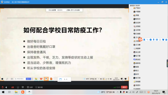 辅导员赖老师以学生违规违纪案例为例,引导同学们遵纪守法,倡导同学们应当树立守法意识,争做一个合格公民。违反纪律和违反法律只有一步之遥,提醒同学们不要出现不良行为,要树立正确的现代法制观念。最后,赖老师针对疫情防控的要求,提醒同学们要配合好学校的日常防疫工作,加强自我管理和自我防护。