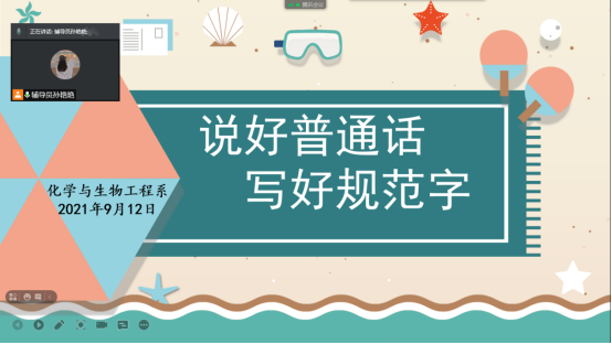 众所周知,九月的第三周,是第24届全国推广普通话周。“说好普通话,写好规范字”是推普周工作的主题。化学与生物工程系20食品药品监督管理和20生物制药技术专业的同学在辅导员孙艳艳老师的组织下,于2021年9月12日在线上开展了推普周主题班会。