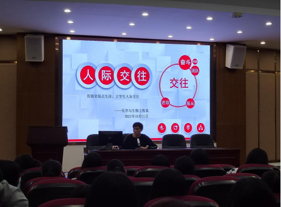 大学生正处于人生成长的一个重要阶段,人际交往是学习和生活过程中必不可少的行为之一。良好的人际关系是个性发展和完善的重要条件,可以交流情感、寻求理解、建立友谊和相互切磋。化学与生物工程系于2021年10月31日在学术报告厅开展了“人际交往”主题班会。