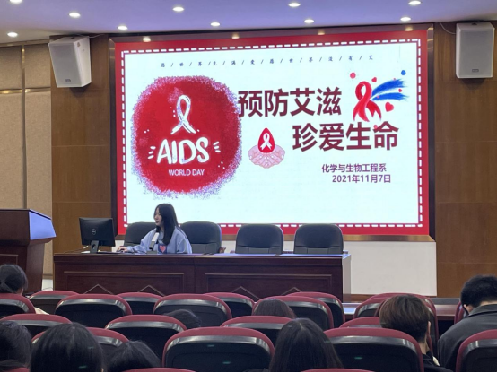 艾滋病的危害及传播速度让人震惊。为了让同学们了解艾滋病相关知识,远离艾滋病,关爱、不歧视艾滋病患者。化工系于2021年11月7日在学术报告厅开展了“预防艾滋,珍爱生命”主题班会。
