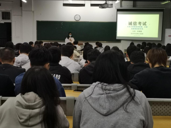 2021年11月7日晚上20:30,化学与生物工程系19级工业分析技术专业和19级食品药品监督管理专业全体同学在教学楼2-505开展“诚信考试”主题班会。
