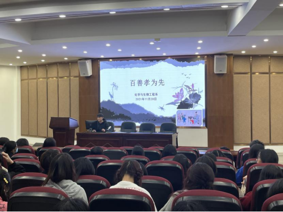 古代先贤视孝道为百善之首。孝道是中华民族的传统美德,为了帮助同学们树立尊老敬老的意识,传承中华传统孝道,感恩父母、长辈,化学与生物工程系于2021年11月28日在学术报告厅开展了“百善孝为先”主题班会。