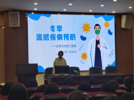冬季是各种传染病的高发季节,很多疾病趁机侵袭我们身体。为了让同学们更好地预防冬季流感疾病的传染,增强身体免疫力,提高卫生健康知识,化学与生物工程系于2021年11月28日开展了“冬季流感疾病预防”主题班会。