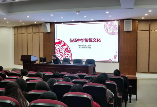 为进一步增强学生文化自信,培养学生成为理智的爱国人士,做中华优秀传统文化的传播者,化学与生物工程系于2021年11月28日在学术报告厅开展了“弘扬中华传统文化”主题班会。