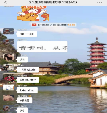 灯谜是中华民族文化的组成部分,具有雅俗共赏的艺术特色。春节临近,人员流动频繁,为做好疫情防控工作,我们提倡少聚会、多宅家,但“年味”依旧不能少。为了丰富同学们的文化生活,活跃节日气氛,化学与生物工程系于2022年1月31日在线上开展“鞭炮声响喜红年,分享合作共前进”活动。