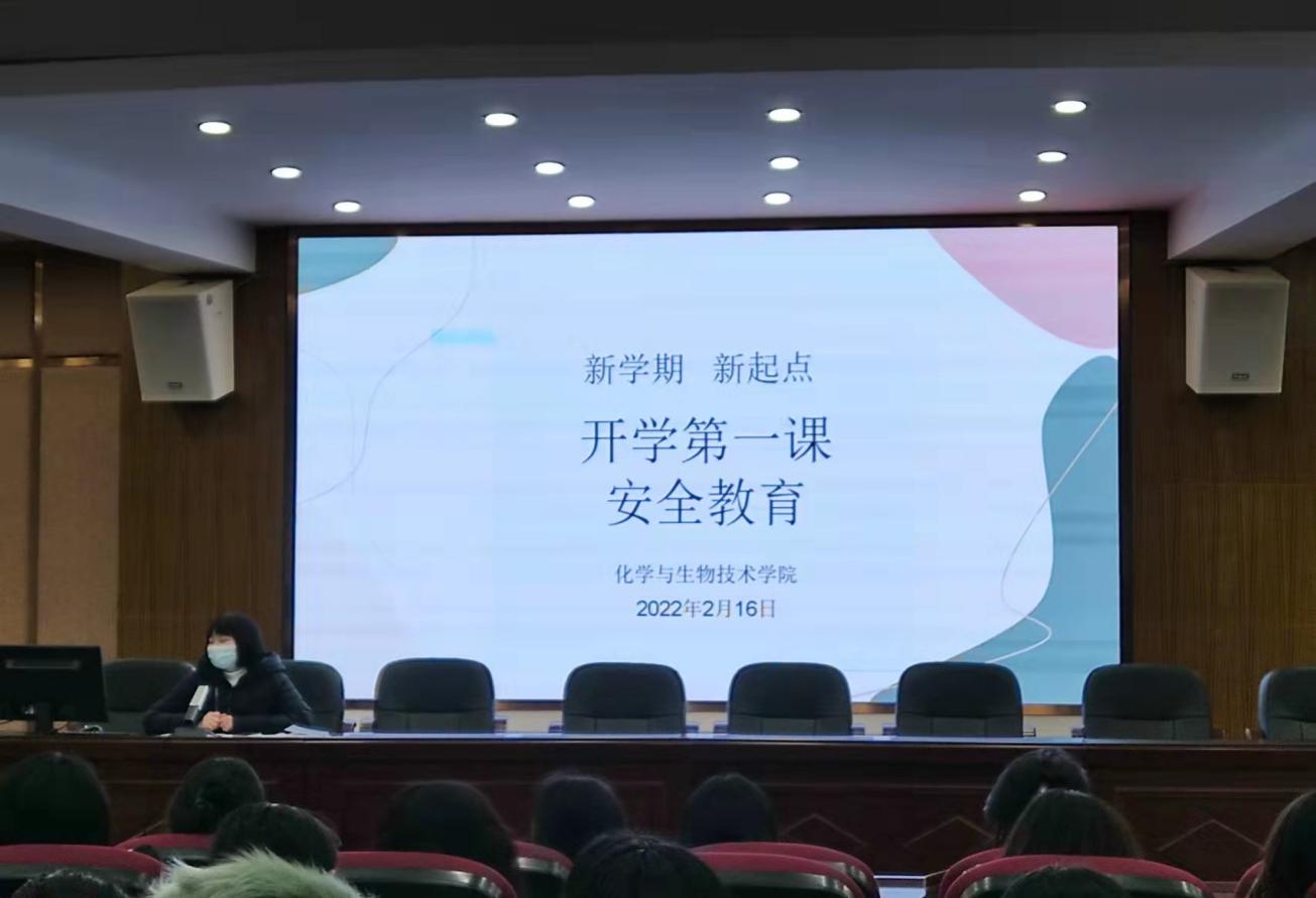 为了落实好学生返校后安全工作,提高自我安全意识,充分保障学生的人身安全,营造良好的校园环境,化学与生物技术学院于2022年2月16日于多功能报告厅开展“开学第一课—安全教育”主题班会。