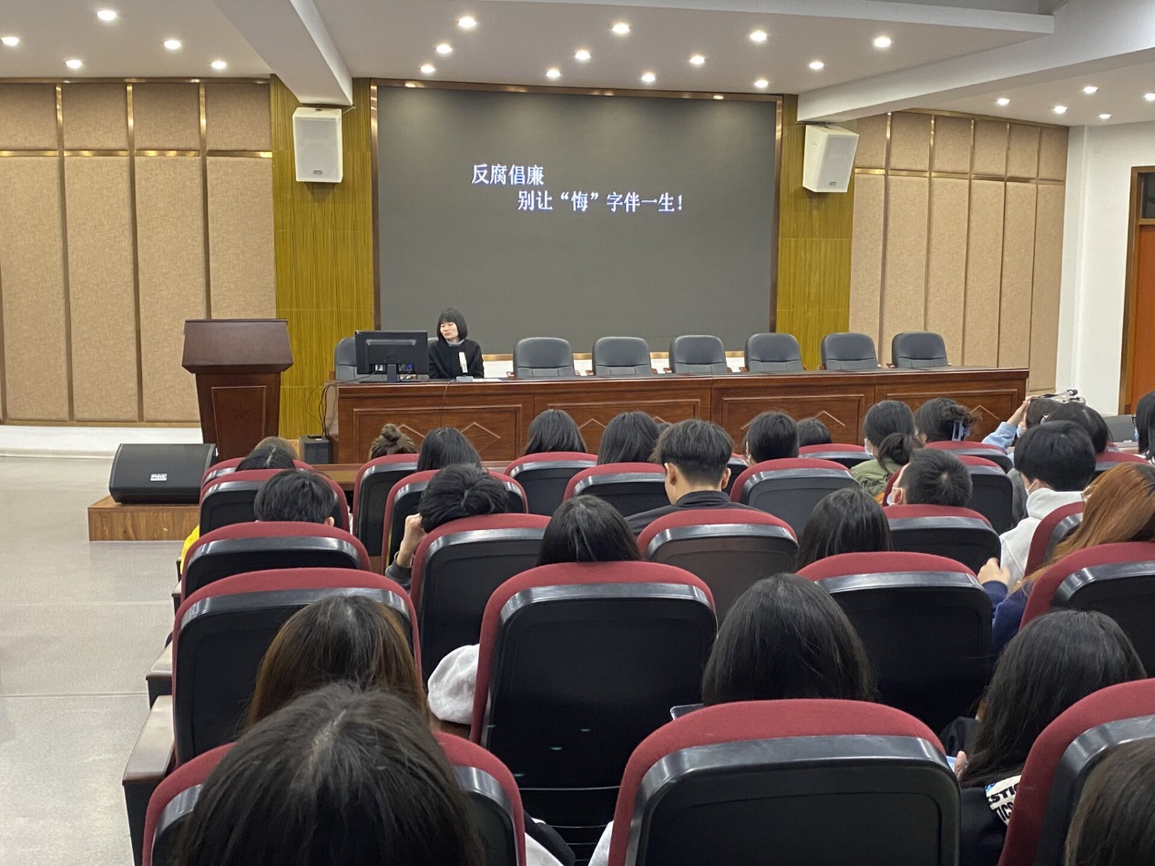 2022年3月6日,化学与生物技术学院在多功能厅组织学生观看廉政警示教育影视片《悔》,教育学生要增强“四个意识”,坚定“四个自信”,做到“两个维护”,积极营造崇廉、尚廉、敬廉的校园廉洁文化氛围。