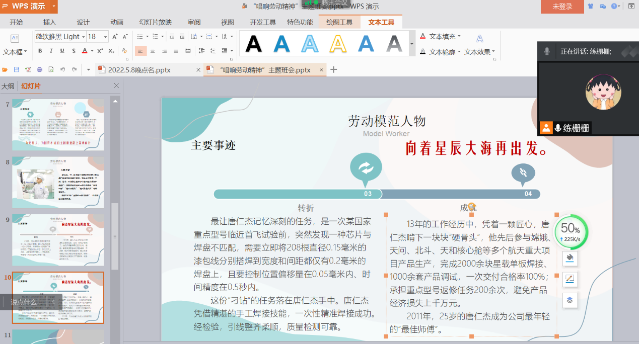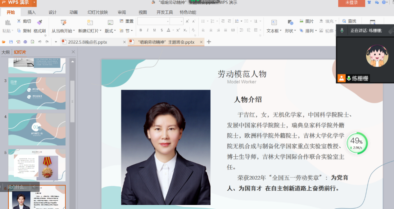“民生在勤,勤则不匮”。2022年5月10日晚上20:30,化学与生物技术学院19工业分析技术专业和19食品药品监督管理专业全体同学在腾讯会议开展“唱响劳动精神”主题班会。