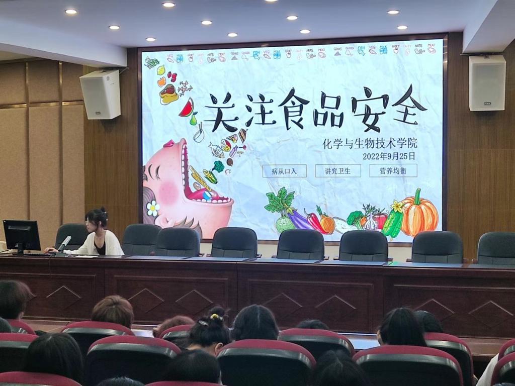 为了让同学们深刻认识食品安全的重要性,提高食品安全的警惕性,使学生安全健康成长,化学与生物技术学院于2022年9月25日于多功能厅开展“关注食品安全”主题班会。