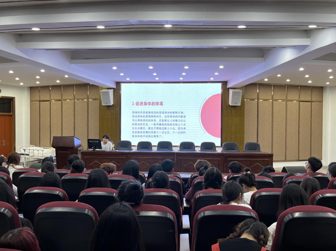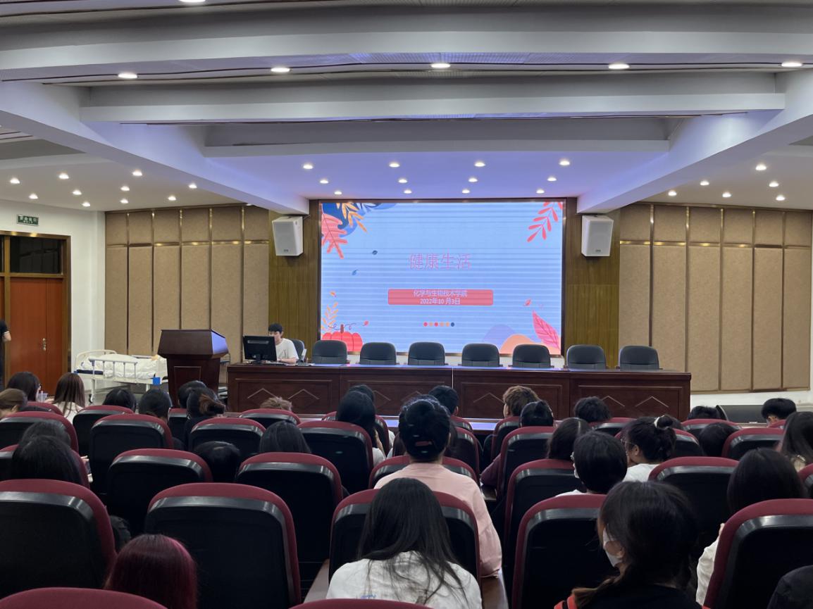 为了引导大学生增强健康生活的意识,合理安排在校期间生活学习,保持身心健康,养成文明健康、绿色环保生活方式,化学与生物技术学院2022年10月3日在多功能厅开展了“健康生活”主题班会。