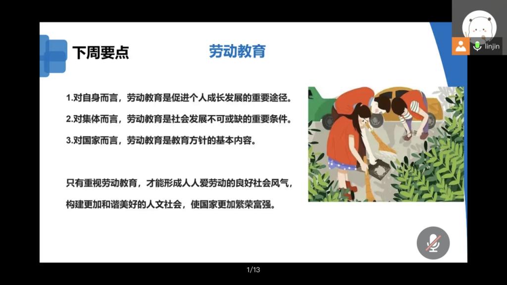 本次班会带给同学们很大感触,面对疫情不怕难,师生努力攻难关,提高了同学们战胜疫情以及顺利完成劳动周的信心。