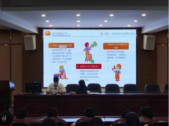 2023年6月是我国第22个全国“安全生产月”。辅导员首先强调要统一思想、高度重视,充分认识安全工作的重要性和紧迫性,防患于未然,做到“人人讲安全”,将应急预案熟记于心,做到“个个会应急”。接着,他们从安全生产月的由来、企业安全生产常识、员工安全生产知识以及八大危险作业“十不”规范宣传应急安全知识。最后,生动形象的讲解了当遇到生命危险的时候,如何使用常见的急救方法施救,如:心肺复苏、海姆利克急救法和外伤止血。