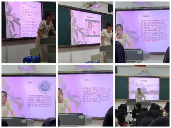 辅导员程霄潇结合学校发展历史、办学宗旨、办学方向、学院架构、校徽校训校歌等基本情况,播放《新闽师新征程》宣传视频,让新生对学校有了一个全新的认识。接着,她介绍了诸如冰心、林默涵、邓拓、翁良毓等许多享誉海内外的专家学者、仁人志士,以及时代楷模昌榕麟和全国道德模范王锦州,用他们的先进事迹激励着同学们奋勇向前,学有所成。最后,程老师引领同学们共同学习《闽江师范高等学校校歌》,解读校徽的寓意,理解“养浩然气,广仁爱心”的校训,加强新生的爱校、爱院情怀。