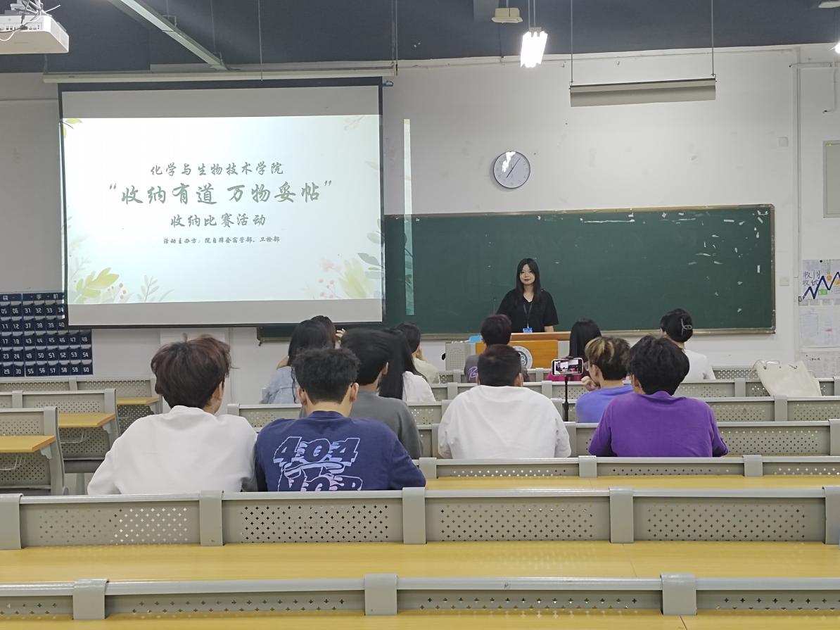 为促进学生德智体美劳全面发展,引导学生合理使用收纳工具,提高宿舍空间利用率,锻炼学生的动手能力,2024年5月15日,化学与生物技术学院分别在仓山校区3-104、福清校区信息技术楼305阶梯教室组织开展“收纳有道,万物妥帖”收纳比赛。