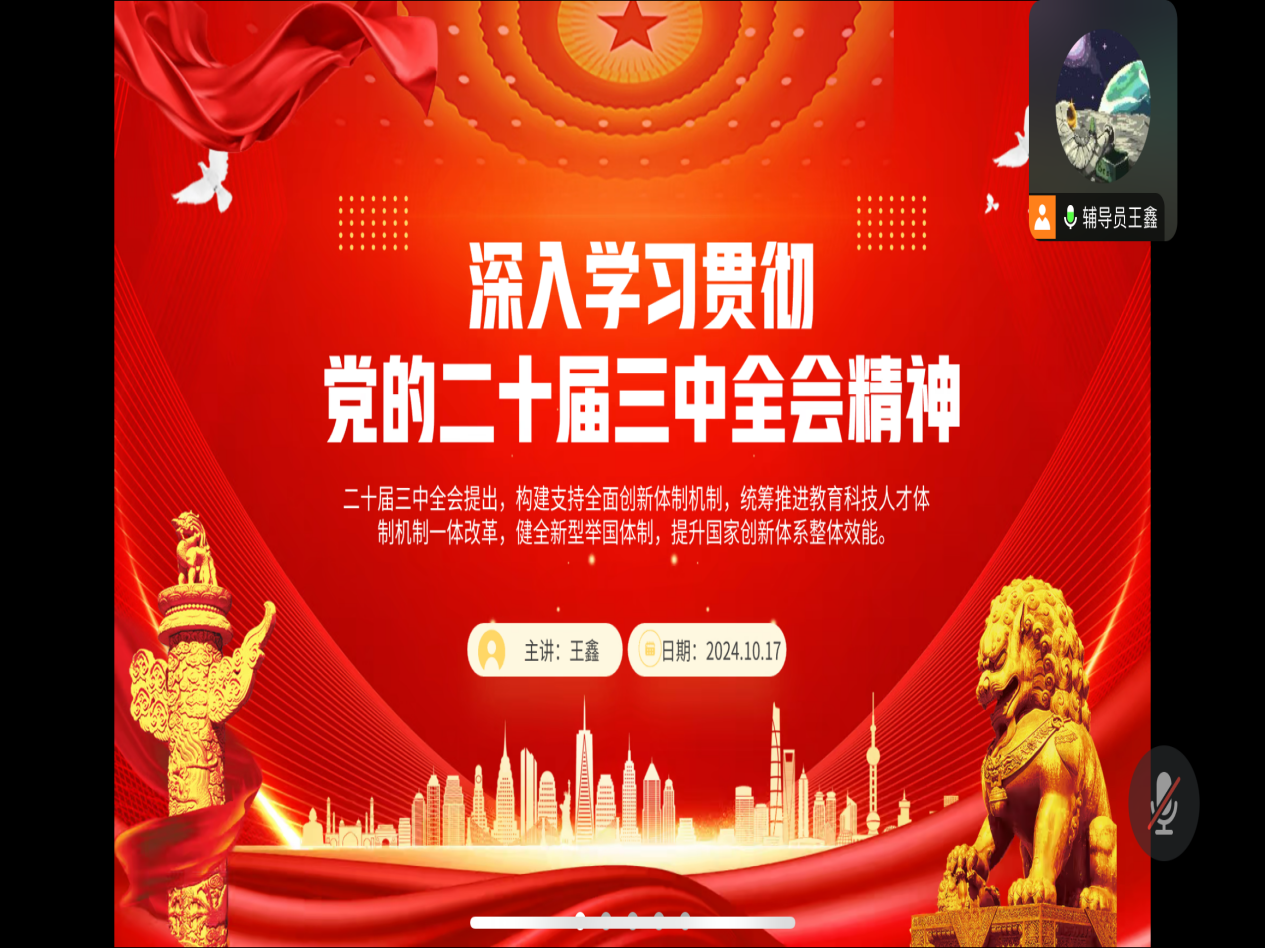 为深入学习贯彻党的二十届三中全会精神,引导学生全面把握会议的核心要义与深远意义,进一步增强学生的政治认同感、理论自信心和行动自觉性,化学与生物技术学院于2024年10月17日晚,开展以“学习贯彻二十届三中全会精神”为主题的教育活动。此次活动旨在带领新生深刻领会党的二十届三中全会精神,为青年学子点亮理想之光,照亮他们前行的道路,激励他们在新时代的征程中奋发有为,为实现中华民族伟大复兴的中国梦贡献青春力量。