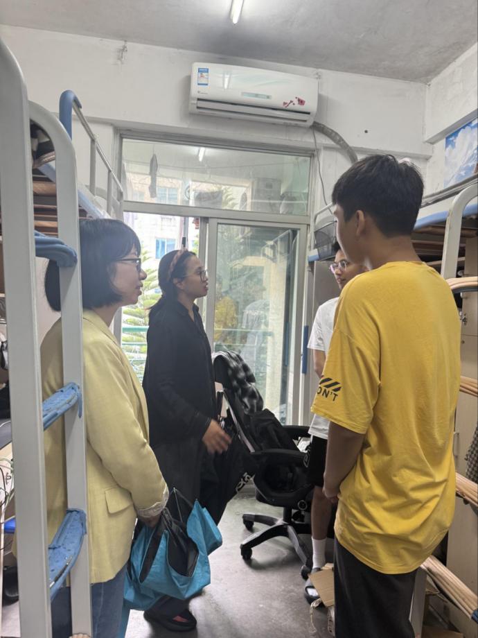 为进一步强化学生宿舍安全管理,消除各类安全隐患,近日,化学与生物技术学院分管学生工作副院长袁晓娟带领辅导员深入学生宿舍,开展安全隐患排查,推动安全教育走深走实。