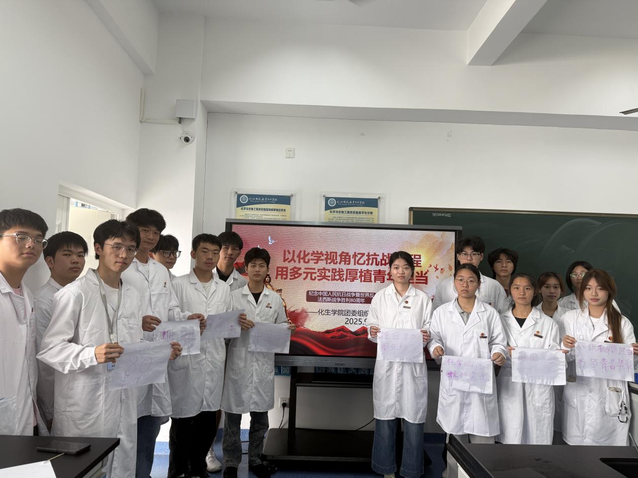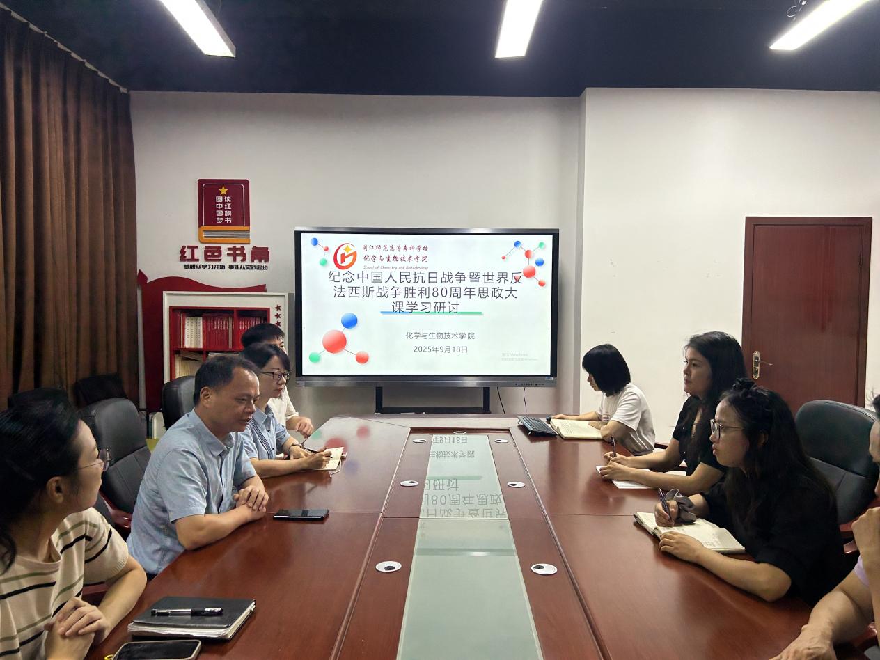 为深切缅怀抗战先烈,传承红色基因,引导学生从历史长河中汲取奋进力量,2025年9月18日,化学与生物技术学院组织师生收看“弘扬伟大抗战精神 做光荣自豪中国人——纪念中国人民抗日战争暨世界反法西斯战争胜利80周年”思政大课。