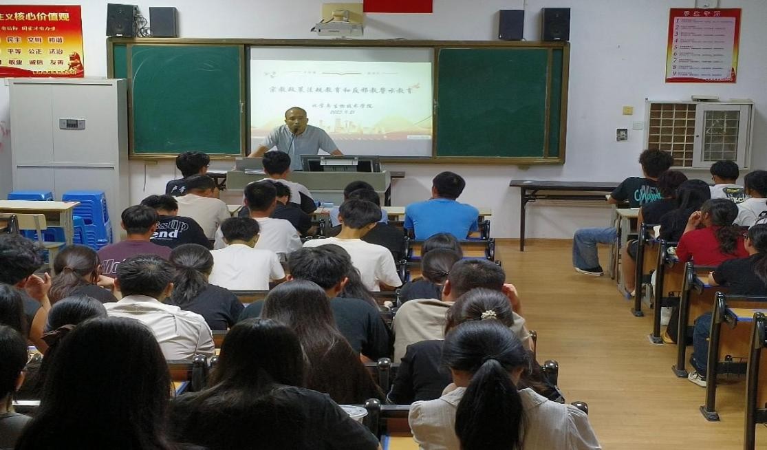 为切实增强2025级新生的国家安全意识与法治观念,帮助新生树立正确的宗教观,筑牢抵御邪教侵蚀的思想防线,9月21日晚上,化学与生物技术学院面向2025级全体新生开展了“宗教政策法规教育与反邪教警示教育”专题讲座。