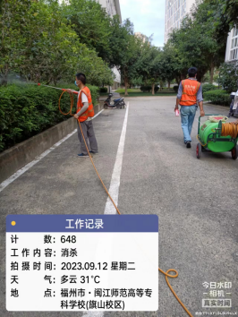 为加强夏秋季流行疾病登革热防控工作,阻断登革热蚊媒传播途径,给师生营造一个安全、卫生、舒适、整洁的校园环境,9月11日至9月13日,后勤保卫处连续3天对校园内的环境卫生进行全方位无死角消杀防疫工作。