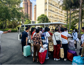同时,安排两部接驳车全天候往返校门口和生活区接送新生,为同学们运送大件物品及行李等,接驳车不间断忙碌地穿梭于校园;安排物业人员有条不紊地做好学生入住咨询,热心的为同学们提行李,帮助同学快速办理好入住手续;安排好师训楼开放新生家长住宿接待处,为有需求的2023级外地新生家长提供校内住宿服务。全天候的温情服务让新生和家长们感受后勤人的温度。