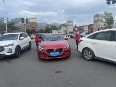 迎新现场,党员志愿者主动上前,疏导车辆有序停靠,帮助提拿行李,为新生提供路线指引,巡查食堂、超市等生活服务网点,提供医疗保障等服务,用实际行动诠释为师生服务的工作理念。