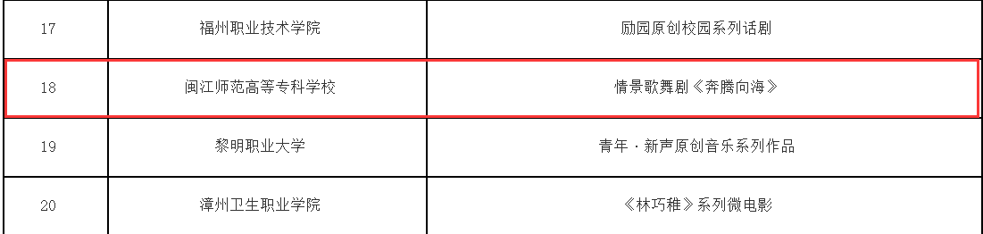 福建省高校原创文化精品项目入选名单