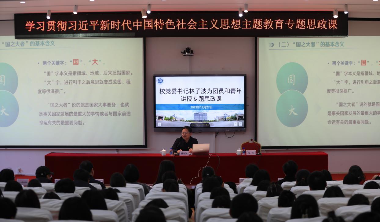 12月27日下午,学校党委书记林子波在旗山校区以“胸怀‘国之大者’,做新时代好青年”为题,为团员和青年讲了一堂既有深度又有温度的专题思政课。学校党委委员、副校长陈强主持,学校相关职能部门负责人、各学院党组织副书记、团委书记、团学干部代表以及第五期青马工程培训班学员共200余人参加。