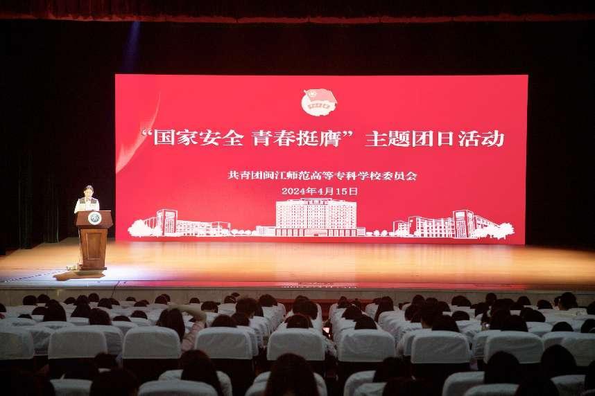 在习近平总书记创造性提出总体国家安全观10周年和第九个“4·15”全民国家安全教育日到来之际,4月15日,我校“国家安全青春挺膺”主题示范团日活动在旗山校区综合楼一楼学术报告厅举行。校团委指导老师、旗山校区各二级学院团委书记及团员青年代表共620余人参加。