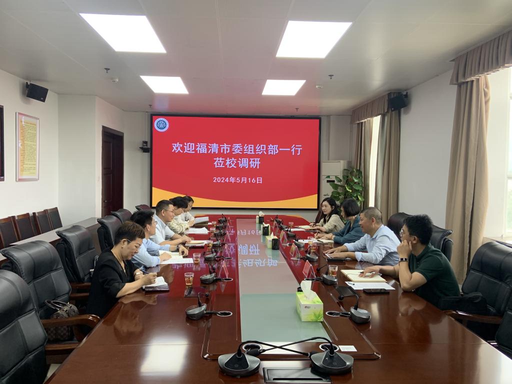 5月16日上午,福清市委组织部副部长林文,福州江阴港城经济区管委会党群工作部部长杨华彪,福清市人力资源和社会保障局副局长陈梦婧,福清市委组织部人才科科长吴亮亮一行4人莅校调研交流。校党委委员、副校长谢敏峰主持会议,教务长、学生处、化学与生物技术学院相关负责人参加座谈。