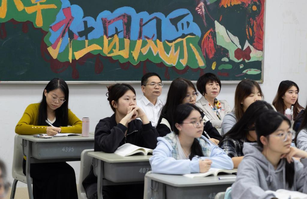 11月18日,党委书记林子波听取金雨青老师上思政课
