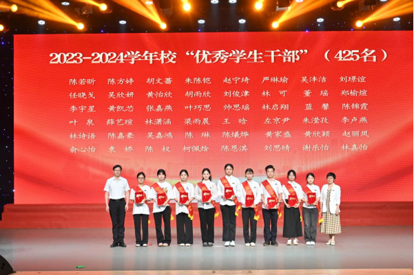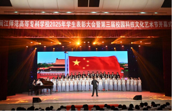 与会校领导为受表彰集体和个人代表颁奖。全场团员青年重温了入团誓词,青年学生以青春之姿倾情演唱了原创校园歌曲《青春闽师》、表演了舞蹈《茶尖尖蝶翩翩》、合唱了《有我》等节目,展现了闽江师专学子昂扬向上的精神风貌。大会在全场齐唱团歌《光荣啊,中国共青团》中圆满落幕。