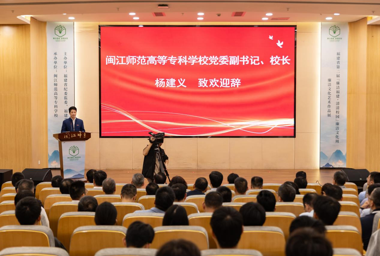 杨建义在致辞中表示,举办廉洁文化艺术作品展,是贯彻落实习近平总书记关于廉洁文化建设的生动实践,有利于进一步提升高校廉洁文化影响力,助力打响“廉洁福建·清清校园”文化品牌。学校也将以承办此次展览为契机,持续深化廉洁文化建设,把廉洁教育贯穿办学治校、教书育人、养德修身始终,以廉洁文化涵养校园正气。