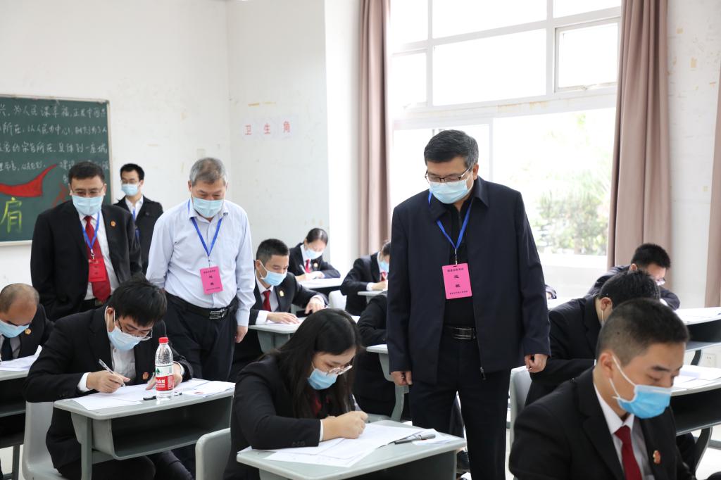 省委政法委员会委务会议成员、政治部主任邓佳文,福州中院党组书记、代院长丁仰豪以及相关单位领导对福州考场进行了巡视。在大家的共同努力下,考试工作顺利完成。