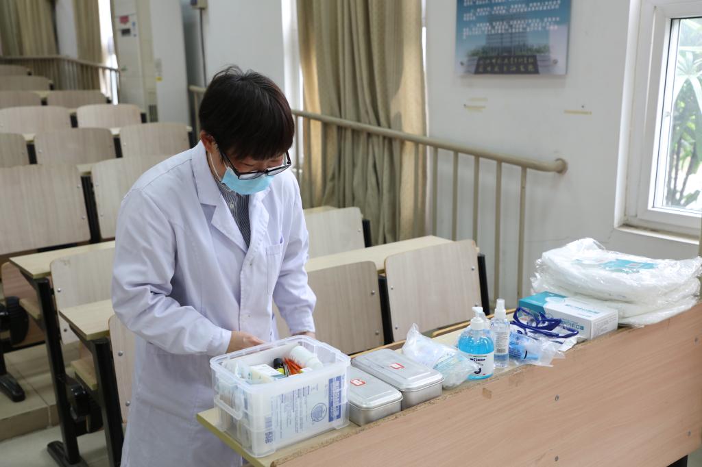 由于当前仍处于疫情防控期间,所有考生佩带口罩,经体温检测合格后进入考点。在进入考场时,监考老师逐个核对每位考生的身份证、准考证以及八闽健康码等相关信息,并对考生进行违禁物品探测,确保监考老师和考生不将电子设备带入考场。
