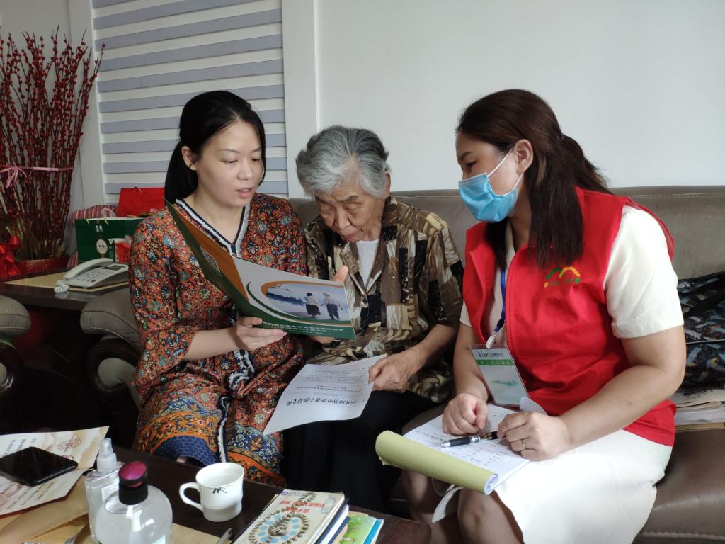 葛慧芳详细地为离休老同志说明了福州市委老干部局为解放战争时期离休干部推出的政府购买服务。这是福州市委老干部局经过招标由福建微尚生活服务有限公司为全市解放战争时期离休干部提供应急救助、日间照料、疾病扶助、心理慰藉等的一种购买服务。服务额度上限为每人每月300元整,按实际发生金额凭出工单报销,每月金额不足300元部分不累计结转至下月,超出300元部分费用自理。