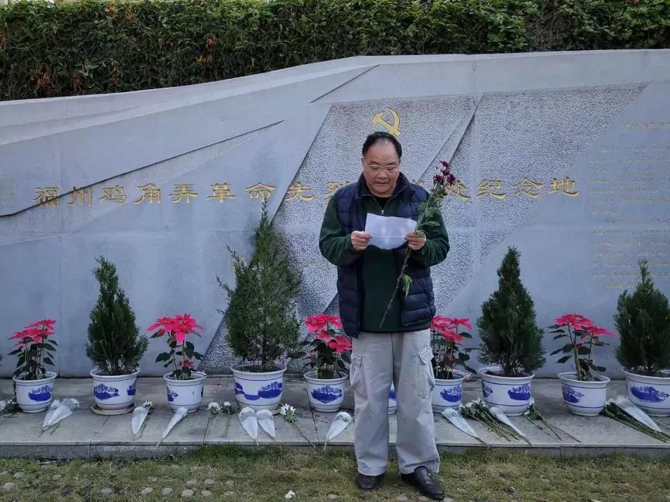 大家在庄严肃穆的烈士纪念碑前肃立默哀,向烈土纪念碑敬献花圈,表达对烈士的崇高敬意和深切悼念之情。随后,我校杰出的校友,福建烈士第一人翁良毓先生家属翁纪湘老伯作为烈士后人代表讲话, 介绍了翁良毓烈士宣传进步思想、领导福州学生开展反帝爱国斗争的英勇事迹。翁老伯表达了对先烈的缅怀之情,希望年轻一代继承和发扬革命先烈的爱国主义精神,立足岗位,敬业奉献。