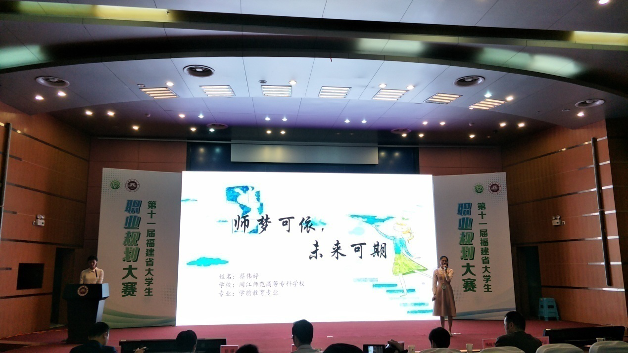 11月17日,第十一届福建省大学生职业规划大赛落下帷幕,本届大赛由福建省教育厅主办,福建师范大学承办。我校2016级学前教育专业学生蔡伟婷(参赛作品《师梦可依,未来可期》,指导老师:吕志达)获得专科组二等奖。
