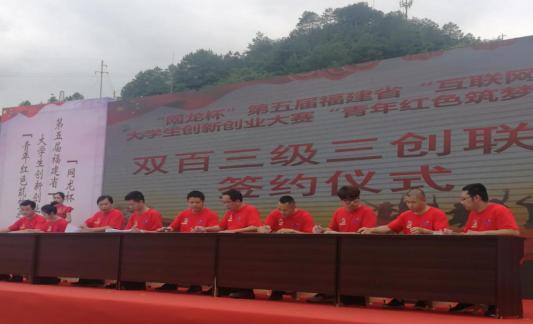 活动现场举行联建党支部、乡村振兴共建基地的项目结对合作签约仪式,29所高校和乡镇、乡镇三创基地以及村户代表签约。我校计算机系红色文化振兴服务队的《红色文化VR展示》项目作为我校唯一代表项目参加启动仪式,并在启动仪式上与宁化县淮土镇凤山村签约,达成对点技术帮扶、推动红色文化传承振兴的合作意向。