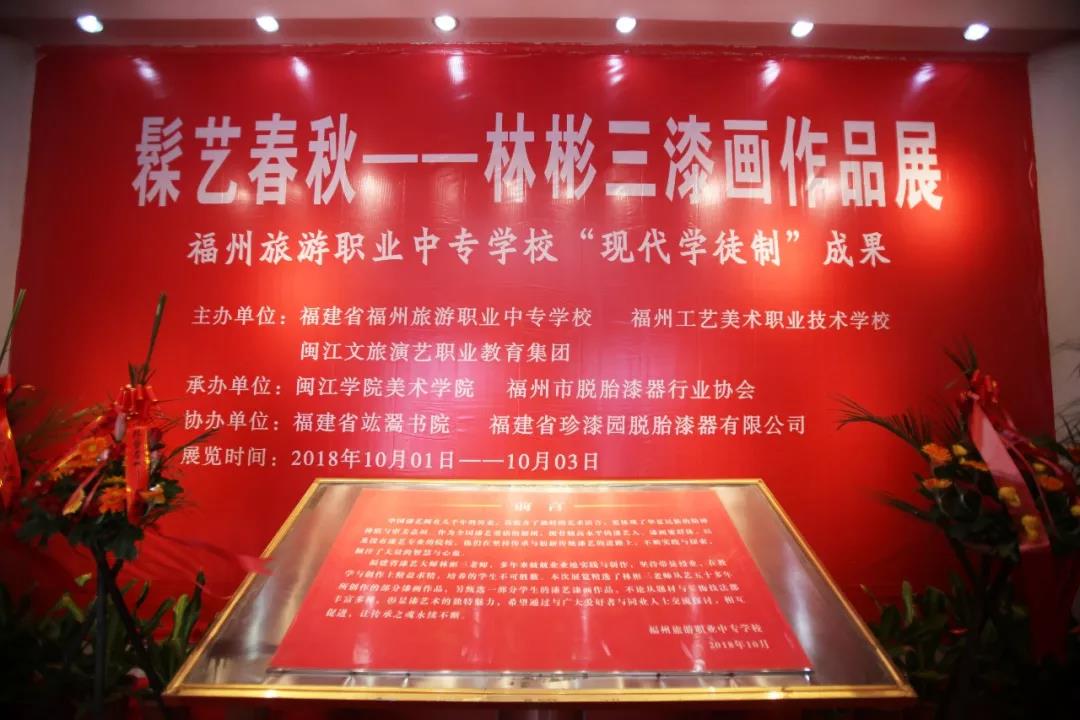 10月1日至3日,髹艺春秋——林彬三漆画作品展在福州画院举行。此次作品展由福州旅游职业中专学校、福州工艺美术职业技术学校和闽江文旅演艺职业教育集团主办,闽江学院美术学院、福州脱胎漆器协会承办。我校副校长张昌勋代表集团参加作品展开幕仪式。活动共展出林彬三先生及其第二、三代弟子的漆画、漆器作品近百件,吸引了大量市民前来观展,收获赞誉无数。