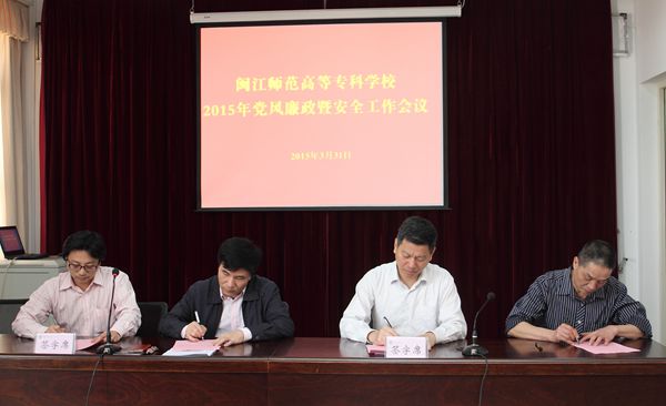 会上,陈荣生书记、林治良校长分别与校领导、各处室、中心、系部负责人签订了2015年度党风廉政责任书和学校安全工作责任书。
